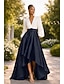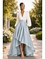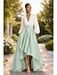 גזרת A א-סימטרי שמלות קוקטייל שמלות ערב שמלת נשף לבוש רשמי אלגנטית בלוק צבע גבוה נמוך שרוול 4\3 צווארון V רשמי אורחת חתונה סאטן עם אסוף