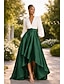 גזרת A עד הריצפה שמלות ערב שמלת נשף לבוש רשמי אלגנטית נוצץ עשוי משי שרוול ארוך צווארון V חתונה רשמי כיס סאטן נצנצים עם נצנוץ קפלים כיס