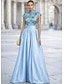 גזרת A עד הריצפה שמלות ערב שמלת נשף לבוש רשמי אלגנטית שרוולים קצרים צווארון V חתונה רשמי שכמיות סאטן עם נצנוץ