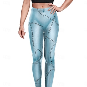 legging נשים חופשה אופנתית וינטג' באורך קרסול גבוה עם הדפס גולגולת נעים נושם סטרץ' קז'ואל בצבעים לבן כחול ירוק חאקי אביב חורף דק