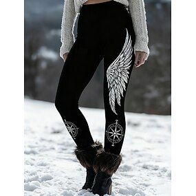 בגדי ריקוד נשים ויקינג צ'ינו חותלות טייץ נעים חופשה בסיסי יום יומי באורך מלא מותניים גבוהים פרפר MOON מדפיס שמור על חום הגוף נוח סטרצ'י (נמתח) קזו'אל יומי רחוב שחור סתיו חורף גזרה צרה