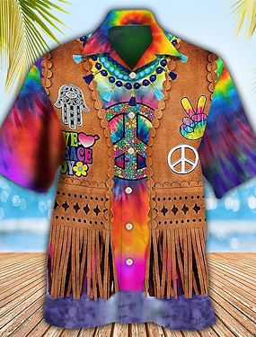 בגדי ריקוד גברים צבעוני היפי חולצה חולצת הוואי חולצת אלוהה שרוולים קצרים חולצה צווארון קובני ספורט אופנתי סגנון רחוב קזו'אל בָּחוּץ הוואי צהוב שחור / חום חום S M L