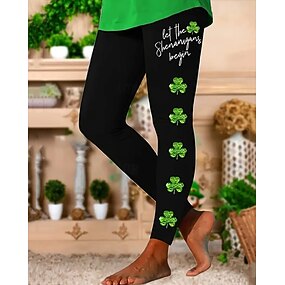 בגדי ריקוד נשים מכנסיים חותלות טייץ נעים סגנון רחוב יום יומי באורך מלא מותניים גבוהיםPantsיום פטריק הקדוש תלתן אלסטית מותניים דפוס נשימה נוח סטרצ'י (נמתח) חופשה רחוב לבוש יומיומי שחור קיץ אביב סתיו