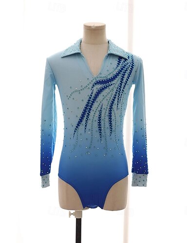 בגד עליון להחלקה אומנותית בגדי ריקוד גברים בנים החלקה על הקרח חולצות כחול סקיי טלאים ספנדקס גמישות גבוהה הדרכה תחרות ביגוד להחלקה על הקרח קלאסי קריסטלים / אבנים נוצצות שרוול ארוך