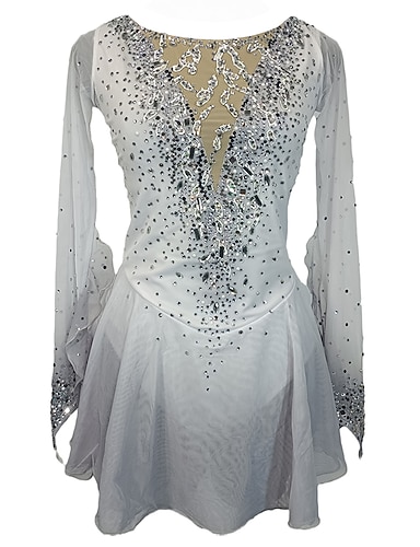 שמלה להחלקה אמנותית בגדי ריקוד נשים בנות החלקה על הקרח שמלות לבן טלאים חור לאגודל רשת ספנדקס סטרצ'י (נמתח) הדרכה אימון מקצועי ביגוד להחלקה על הקרח קריסטלים / אבנים נוצצות שרוול ארוך החלקה אמנותית
