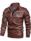 בגדי ריקוד גברים ז'קטים מעור מעיל אופנוענים מעיל עור וינטג' מעיל אופנועים יומי חופשה עמיד שמור על חום הגוף כיס סתיו חורף אחיד אופנתי קלסי עומד רגיל שחור אדום פול חום Jackets