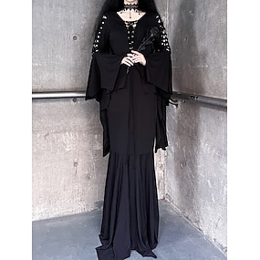 פאנק & גותיות שמלות קוסם מורטישה אדמס צבע אחיד תחפושות בגדי ריקוד נשים פנטזיה ליל וולפורגיס האלווין (ליל כל הקדושים) קרנבל מסיבה\אירוע ערב מבוגרים שמלה