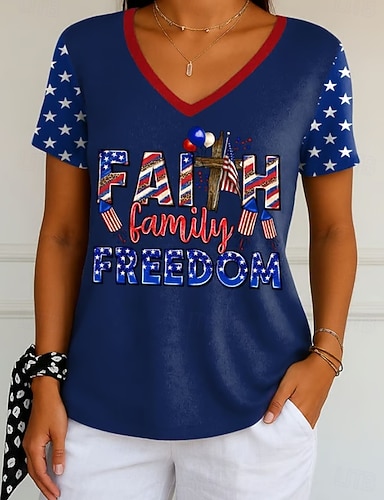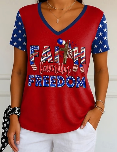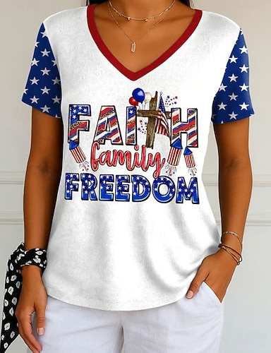 יום העצמאות האמריקאי בגדי ריקוד נשים חולצה קצרה בלוק צבע דפוס גראפי דגל אמריקה וינטאג' מסוגנן קלסי שרוולים קצרים צווארון עגול קצר צווארון עגול חולצות רגילות יומי סוף שבוע לבן אדום וכחול קיץ אביב סתיו