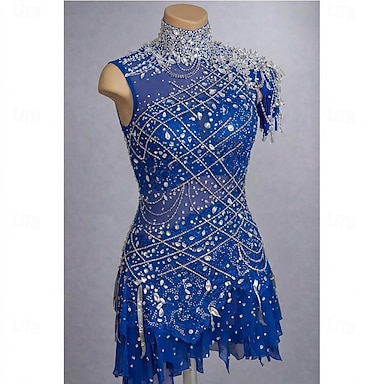 שמלה להחלקה אמנותית בגדי ריקוד נשים החלקה על הקרח שמלות כחול טלאים פתוח בגב סטרצ'י (נמתח) הדרכה תחרות ביגוד להחלקה על הקרח קלאסי קריסטלים / אבנים נוצצות ללא שרוולים החלקה על קרח החלקה אמנותית