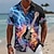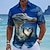 בגדי ריקוד גברים חיה כריש בצורת לב חולצה חולצת הוואי חולצות טרופיות שרוולים קצרים הוואי מצחיק חופשת חוף קיץ אביב צווארון מתקפל הדפסת תלת מימד חולצות צווארון פול כחול בהיר