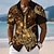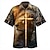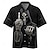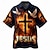 בגדי ריקוד גברים שִׁריוֹן צלב לוחם חולצה חולצה קובנית חולצה עם כפתורים שרוולים קצרים רטרו וינטג' לבוש רחוב חגים קיץ אביב חולצת צווארון מחנה הדפסת תלת מימד שחור