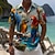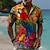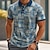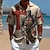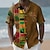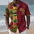 יונייטנט בגדי ריקוד גברים שבטי מפה אתיקה / אפריקאית חולצה חולצת קיץ חולצה עם כפתורים שרוולים קצרים רטרו וינטג' חגים קיץ אביב צווארון מתקפל הדפסת תלת מימד חולצות צווארון פול אודם חאקי שחור