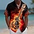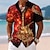 בגדי ריקוד גברים גיטרה כלי מוזיקה אֵשׁ חולצה חולצה עם כפתורים חולצת מחנה שרוולים קצרים רטרו וינטג' פסטיבל מוזיקה חגים קיץ אביב צווארון קובני הדפסת תלת מימד שחור / כתום כתום