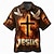 בגדי ריקוד גברים צלב יֵשׁוּעַ יונים חולצה חולצה עם כפתורים חולצת מחנה שרוולים קצרים רטרו וינטג' לבוש רחוב חגים קיץ אביב צווארון קובני הדפסת תלת מימד פול חום שחור