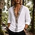 בגדי ריקוד גברים חולצה חולצת פשתן חולצה פופ-אובר חולצת קיץ חולצת חוף חולצה וינטג' צבע אחיד בָּחוּץ חופשה לבן שרוול ארוך צווארון V קיץ אביב ביגוד