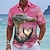 בגדי ריקוד גברים חיה תנין בצורת לב חולצת הוואי חולצות טרופיות חולצת אלוהה שרוולים קצרים הוואי מצחיק חופשה ביגוד חוף קיץ אביב צווארון מתקפל הדפסת תלת מימד חולצות מכופתרות פול ורוד מסמיק תלתן