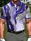 בגדי ריקוד גברים גאומטרי חולצות פולו ספורט שרוולים קצרים חולצות פולו חולצות עם צווארון יום יומי בגדי ספורט ומנוחה הדפסת תלת מימד כפתורים קיץ אביב פול סגול תלתן
