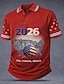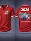 גביע הכדורגל 2026 בגדי ריקוד גברים דגל חולצות פולו שרוולים קצרים חולצות פולו חולצות עם צווארון יום יומי בגדי ספורט ומנוחה הדפסת תלת מימד כפתורים אביב קיץ פול לבן אודם