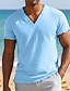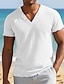 בגדי ריקוד גברים טופ טי טי שירט מפשתן שרוולים קצרים שרוול קצר צווארון V קיץ אחיד אופנתי מעצב בסיסי רך קזו'אל חוף חופשה כחול בהיר ורוד לבן חולצה עליונה לגברים