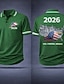 גביע הכדורגל 2026 בגדי ריקוד גברים כדורגל חולצות פולו שרוולים קצרים חולצות פולו חולצות עם צווארון יום יומי בגדי ספורט ומנוחה הדפסת תלת מימד כפתורים קיץ אביב לבן אודם תלתן
