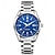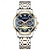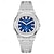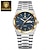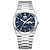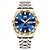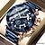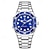 שעון יוקרה לגברים, חוגה כחולה כרונוגרף עם מופע ירח ותאריך, שעון קוורץ אנלוגי עם רצועת נירוסטה, ספרות רומיות עם סמני יהלום, שעון יד עסקי לגברים, מתנה