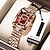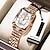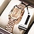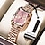 שעון נשים מתנה ליום האם, חוגה מרובעת בצבע זהב ורוד עם קריסטלים נוצצים, שעון יד קוורץ עם רצועת נירוסטה עמידה למים, תכשיט שעון אלגנטי לאשתה, חוגות בצבעים מרובים