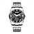 OLEVS גברים שעון מכני ריינסטון עסקים שעון יד תצוגת שלב הירח זורח עמיד במים פְּלָדָה שעון