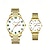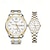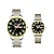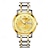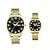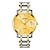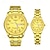 סט שעונים זוגי לגברים ונשים, שעונים תואמים לו ושלה, שעון יד קוורץ מפלדת אל-חלד זהב בשני גוונים עם תצוגת יום ותאריך, מתנה עמידה למים לאוהבים ליום נישואין