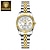 שעון יוקרה לנשים, רצועת נירוסטה זהב-כסף בשני גוונים, מחוגים זוהרים עם לוח שנה לתאריך, חוגה שחורה אלגנטית עם יהלום ונושא שעון יד לנשים, מתנה עבורה