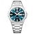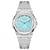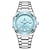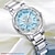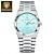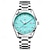 שעון קוורץ לגברים, שעון יד אנלוגי מפלדת אל-חלד עמיד למים עם לוח טורקיז כחול בהיר, עיצוב בסגנון צוללן עם תאריך מוגדל, שעון יד עסקי אופנתי לגברים
