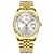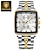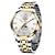 שעון יוקרה לגברים בשני גוונים בצבע זהב וכסף, שעון יד עסקי קוורץ מפלדת אל-חלד עם תאריך יום כפול, חוגה רומית עם יהלום וספרות שעון יד קלאסי, מתנה אופנתית בשבילו