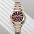 שעון נשים בצבע זהב ורוד עם חוגה אדומה בגימור גרדיאנט עם אבני חן, שעון יד קוורץ יוקרתי לנשים עם תצוגת לוח שנה לתאריך, רצועת רשת מתכווננת, תכשיטי אופנה אלגנטיים מתנה לאמא ואישה