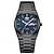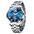 שעון יד לגברים קוורץ יוקרתי חרוט, חוגה כחולה טורקיז עם תאריך, רצועת נירוסטה מגולפת עמידה למים, תכשיטי אופנה לגברים, בחירת מתנה בסגנון היפ הופ