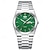 שעון גברים עם לוח ירוק יער, רצועת נירוסטה קוורץ שעון יד עם תצוגת תאריך, שעון אנלוגי עסקי קז'ואל עמיד למים לגברים, תכשיטי אופנה קלאסיים מתנה לגברים, כסף
