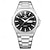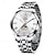 שעון קוורץ לגברים עם לוח שנה לתאריך, רצועת מתכת מפלדת אל-חלד, שעון יד עסקי קז'ואל לגברים, מסגרת משובצת חוגה כסופה, שעון אנלוגי, מתנה אופנתית לגברים