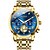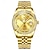 שעון זהב יוקרתי לגברים, שעון יד קוורץ עסקי אופנתי עם צמיד נירוסטה, לוח שנה לתאריכים, עמיד למים, שעון גברי קלאסי אלגנטי מתנה לאב ובעלה