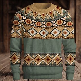 בגדי ריקוד גברים גאומטרי סוודר Fair Isle סוודר סוודר סריגים צווארון צווארון יום יומי חופשה בית רחוב הדפסת תלת מימד סריגה Keep Warm שרוול ארוך אביב סתיו חורף חום