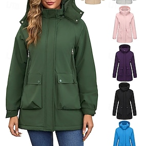 בגדי ריקוד נשים ז'קט קז'ואל מעילי גשם עמידים למים מעילי גשם עמיד למים עמיד רוכסן כיס אופנתי חוץ אחיד ליציאה סוף שבוע רוכסן רגיל עם קפוצ'ון רגיל שרוול ארוך הלבשה עליונה שחור כחול כהה סתיו חורף
