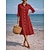 בגדי ריקוד נשים שמלת מידי שמלת חולצה שמלת קז'ואל שמלה עם כיווץ במותן שמלת פשתן דמוי עור אופנתי בסיסי מודרני יומי חופשה ליציאה רגיל אחיד שרוול ארוך צווארון חולצה פול שחור יין כתום אביב סתיו