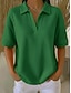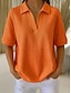 בגדי ריקוד נשים חולצה קצרה טופ טי אחיד אופנתי מסוגנן בסיסי שרוולים קצרים צווארון חולצה חולצות רגילות יומי ליציאה סוף שבוע פול שחור לבן כתום תלתן קיץ אביב