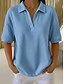 בגדי ריקוד נשים חולצה חולצות פשתן מכותנה כפתור למעלה 100% כותנה כפתורים צבע אחיד בסיסי יום יומי שרוול 4\3 צווארון V חולצות רגילות יומי שחור לבן אודם חאקי קיץ