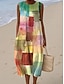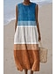 בגדי ריקוד נשים שמלת מידי שמלת שיפט שמלת קיץ שמלה עם כיווץ במותן חופשה יום יומי בוהו חוף מפלגה ליציאה מונח בצורה רפויה פרחוני גראפי מופשט ללא שרוולים צווארון עגול קצר כחול רויאל כתום כחול סקיי בהיר