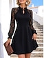 בגדי ריקוד נשים שמלת מידי שמלה שחורה שמלת תחרה השמלה המפלגה שמלת קוקטייל אלגנטית אופנתי מסיבה חופשה רשמי אורחת חתונה רגיל צבע אחיד שרוול 4\3 צווארון V שחור אביב סתיו חורף