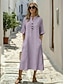 בגדי ריקוד נשים שמלת מידי שמלות פשתן מכותנה שמלת פשתן מכותנה אופנתי מודרני יומי בָּחוּץ חופשה מונח בצורה רפויה אחיד שרוולים קצרים צווארון V שחור סגול כתום כחול בהיר קיץ אביב