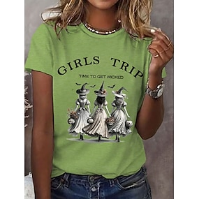חולצת נשים של ה Halloween עם גרפיקה של מכשפה עם גזרה קלאסית קצרה עם צוואר עגול טופים רגילים לבישת יומי עם הדפס שחור ורוד כחול תכלת סגול קיץ אביב עוף