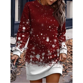 חג המולד בגדי ריקוד נשים שמלה באורך הברך שמלת סוודר שמלת שיפט חופשה יום יומי יום הולדת פגישה (דייט) רגיל גראפי חג המולד המכוער שרוול ארוך צווארון עגול קצר יין פול סגול פוקסיה אביב סתיו חורף
