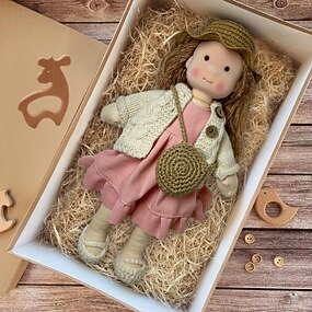 בובת וולדורף בעבודת יד לתינוקת עם סטים של בגדים - בובת קטיפה רכה 11.8 אינץ' לפעוטות מתנה אידיאלית לחג המולד לילדים