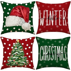 אדום חדש &סט כריות חג המולד ירוק, כריות נוי קלאסיות בצבעים שונים עם הדפס עץ חג המולד, כריות נוי חגיגיות