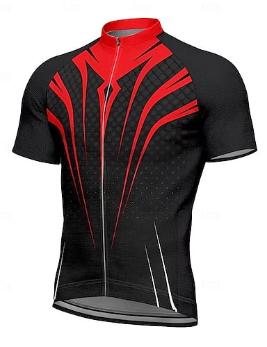 בגדי ריקוד גברים חולצת ג'רסי לרכיבה גראפי גיאומטרי שיפוע שרוולים קצרים אופנייים ג'רזי צמרות עם 3 כיסים אחוריים עמידות UV ייבוש מהיר רוכסן קדמי רצועות מחזירי אור ספורט שחור ביגוד