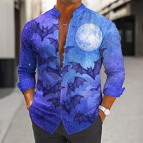 חג ליל כל הקדושים בגדי ריקוד גברים ירח מפחיד תחפושות ליל כל הקדושים חולצה עם כפתורים שרוול ארוך מחריד בגדי ערב למסיבה סתיו חורף אביב קיץ צווארון חולצה הדפסת תלת מימד שחור